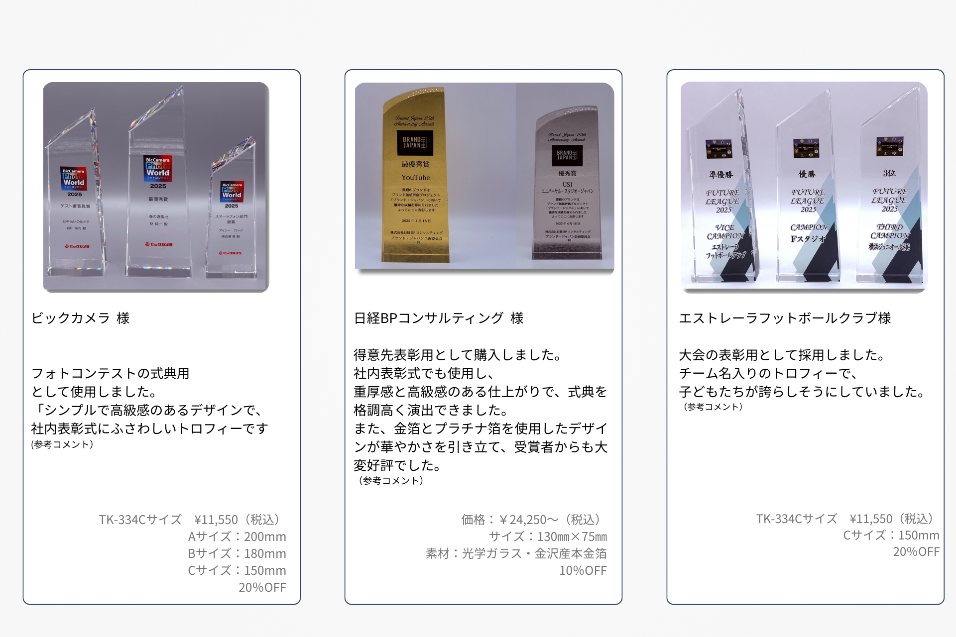オリジナルトロフィーの期間限定セール 高品質なクリスタルトロフィーを特別価格で販売
